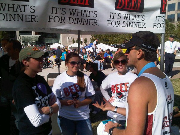 With the short week following the Wichita Marathon on Sunday, the Saturday running of the KC Marathon gave me a chance to see how well my recovery, following months of being exhausted from my 202 miler in April, was progressing. At the marathon expo I was given the pleasure of addressing runners as one of the featured speakers. The question of how I recover so quickly from marathon to marathon was one topic on the mind of many of those in attendance. As I was working with the Kansas Beef Council and sporting my “Real Men Eat Beef” t-shirt, I can see why my particular eating habits were a hot topic.
